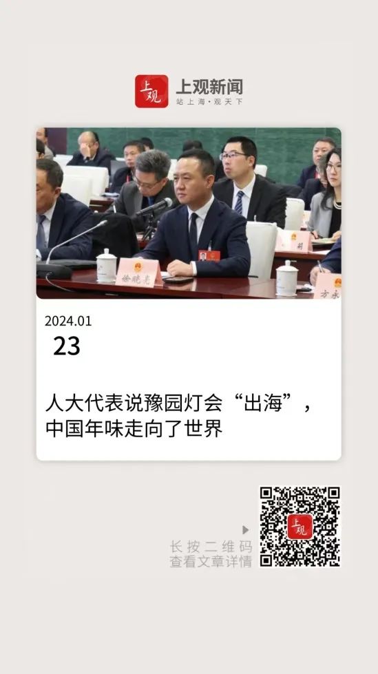 联组审议会上,徐晓亮指出:“拥有29年历史的豫园灯会,是如今上海最有年味的地方,同时也是传承上海民俗文化的重要载体。豫园灯会今年首次走出国门,去到了时尚和浪漫的法国巴黎,不仅向法国民众展示东方文化的独特魅力,也为中法建交60周年、中法文旅年献礼。”