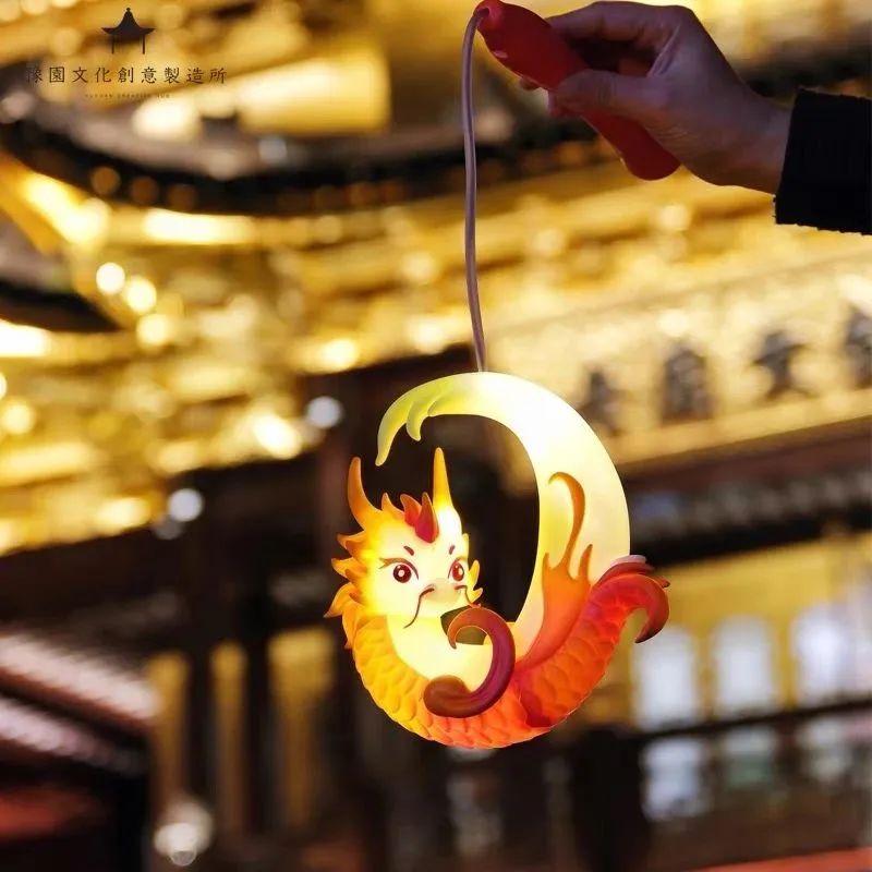 龙年春节,龙的元素必不可少。今年的豫园灯会上线了两款国风手提龙灯,三款新春龙帽。其中,“金豫龙瑞瑞”以中华第一玉龙“C”型龙“汉玉龙”为造型,目前几乎“一灯难求”。