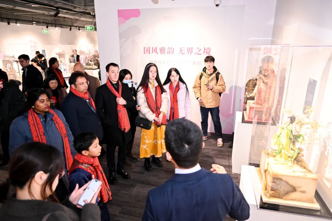 豫园商城不仅有众多凝聚了海派文化的上海本土的优质品牌,还汇聚了来自中国各地、蕴含东方生活美学的文化元素。当天,老外讲故事俱乐部的成员首先参观了正在华宝楼举办的“三闲—书画小品展”和“糖王展”,近距离感受了中华书法、绘画、紫砂等多种艺术形式,翻糖蛋糕《武则天》更是引起观展人群的惊呼。中式翻糖技艺脱胎于中国传统面塑技艺而来,是传统与现代的极致甜蜜,也是传统文化不断创新融合的典范。