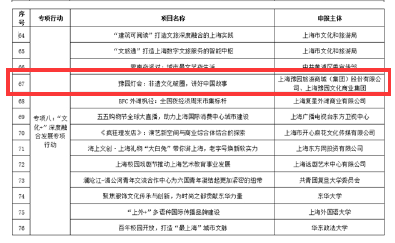 会上,100个“最佳”上海文化品牌在大会上公布,豫园灯会入选2022-2023年打响“上海文化”品牌工作创新案例。