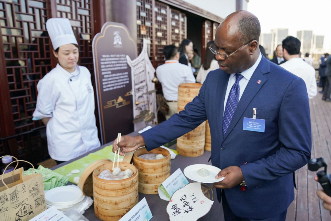 书法写扇、剪纸、手编中国结、品鉴茶道、制作南翔小笼……在豫园海上梨园,驻华外交官们亲身体验中国传统民间艺术和非遗文化,纷纷惊叹东方生活美学的魅力。