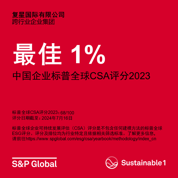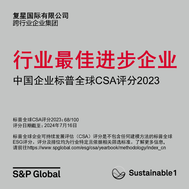 近年来,复鑫在ESG各方面都有突出表现。截至目前,复鑫国际MSCI ESG评级为AA,是大中华地区唯一一家MSCI ESG评级为AA的综合型企业;标普全球企业可持续发展评估成绩排名超过94%的全球同业,成功入选标普全球《可持续发展年鉴2024》,并跻身《可持续发展年鉴(中国版)2024》最佳1%》及获颁“行业最佳进步企业”殊荣;富时罗素FTSE ESG评分保持领先,并持续入选富时罗素社会责任指数(FTSE4Good Index Series)成份股。