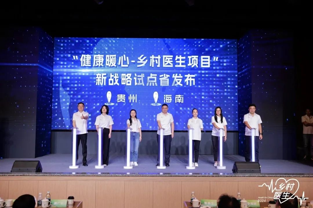 在发布仪式现场,“健康暖心-乡村医生项目”新战略试点省发布。2024年,乡村项目在贵州、海南二省开启新战略试点,推行属地化管理,与国药控股贵州有限公司、复鑫旅文集团、海南矿业签署合作协议,开启“一县一策”转型升级之路,融通更多优质资源,实现项目县特色化发展。
