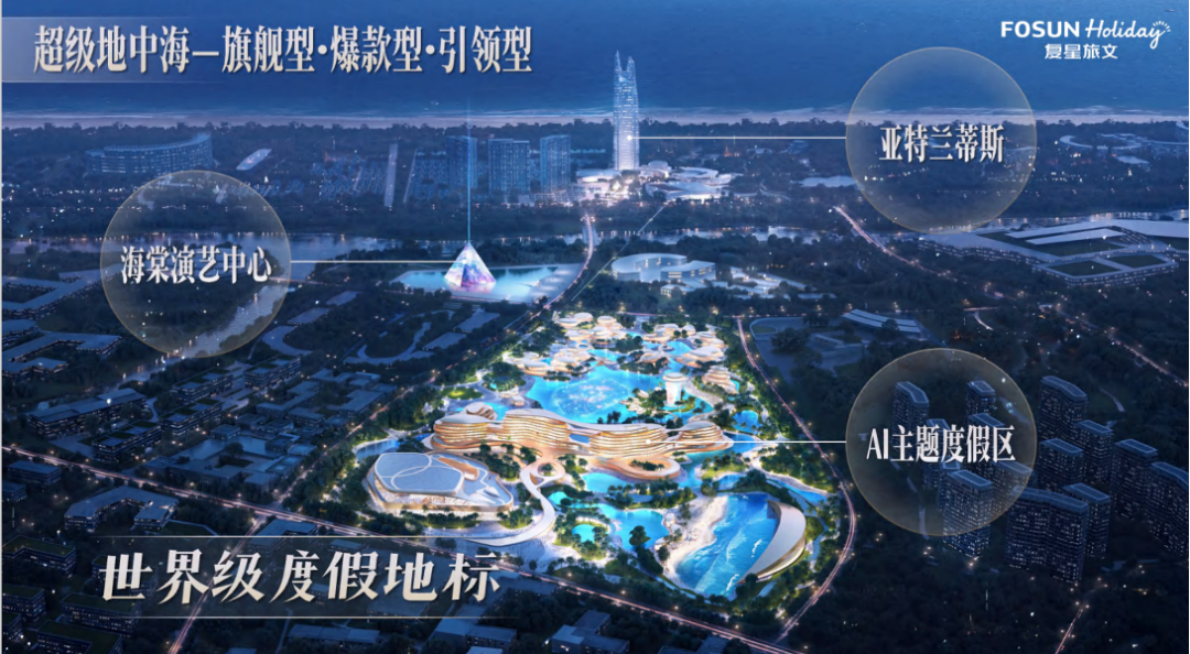 同时,全球独一无二的AI主题度假区是超级地中海的另一个亮点。复鑫相信,用AI的会淘汰不用AI的,AI用得好的会淘汰AI用得不好的。在AI主题度假区内,包含了诸多“首发概念”,包括全球首家AI智能度假酒店,AI数字人G.O服务,AIGC个性化客房,全球首条超现实主义未来水街,全球首个智能化冲浪池、AI娱雪等。我们相信,在各式创新融合的加持下,超级地中海必将成为海南和三亚新的世界级度假名片,引领未来度假的现象级作品。更多有关产品的信息,也敬请大家关注。