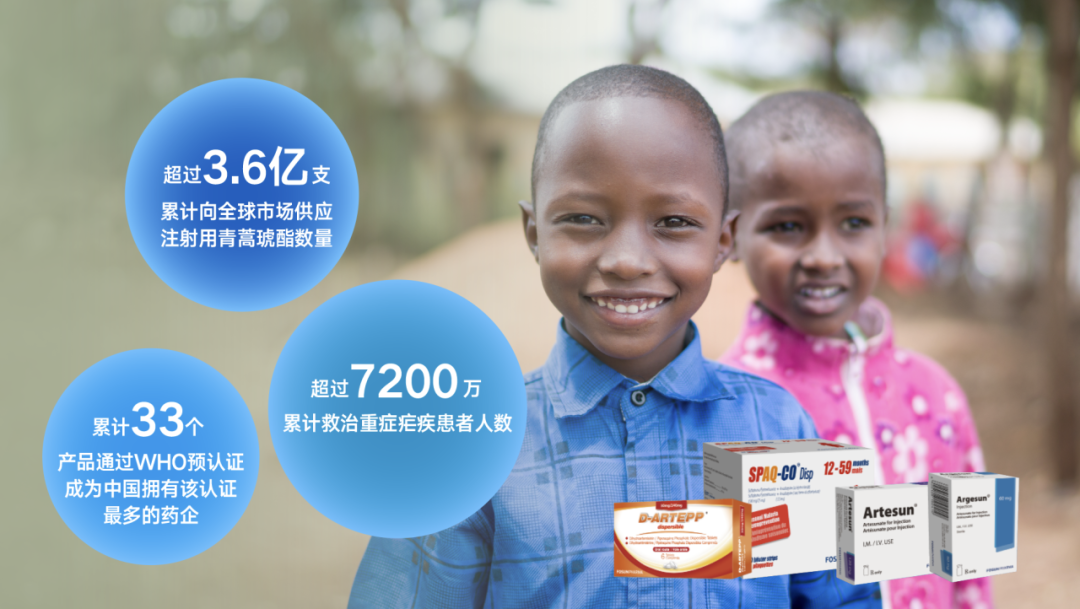 复鑫依托长期积累的科创能力,复鑫“全球首款”“中国首个”成果不断涌现。复鑫医药自主研发的注射用青蒿琥酯,截至2024年上半年,已累计救治了全球超7,200万重症疟疾患者。第二代注射用青蒿琥酯Argesun®,成为首个通过世界卫生组织预认证的“一步配制青蒿琥酯注射剂”,用于治疗疟疾。