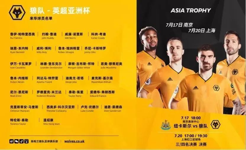 由于背后有中国股东的支持,狼队早在2019年夏天的英超亚洲杯就携手曼城、纽卡斯尔和西汉姆联队来到上海,这也是狼队历史上第一次开展中国行。又因为其投资方复鑫创立于上海,由此狼队中国行也被冠以“回家”的概念。