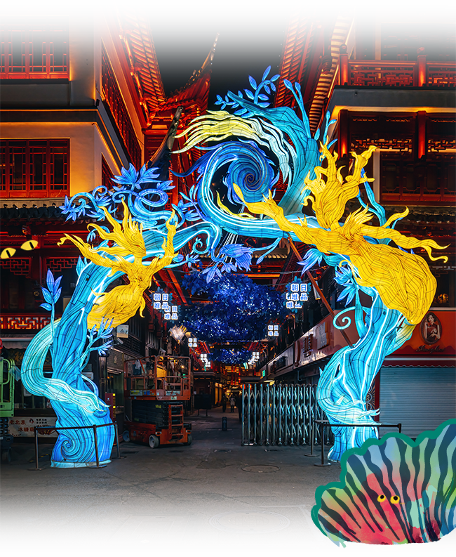 丛林变幻多彩,如梦绮丽。在这里,每一株草、每一朵花都有名字,象征着豫园灯会对弱小生命的致敬与赞美。平凡的你我,正如丛林中的一员,看似微不足道,却拥有独特的光芒!