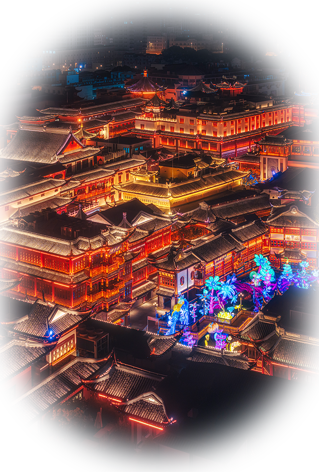 尽情享受夜晚亮灯后豫园的绝美夜景