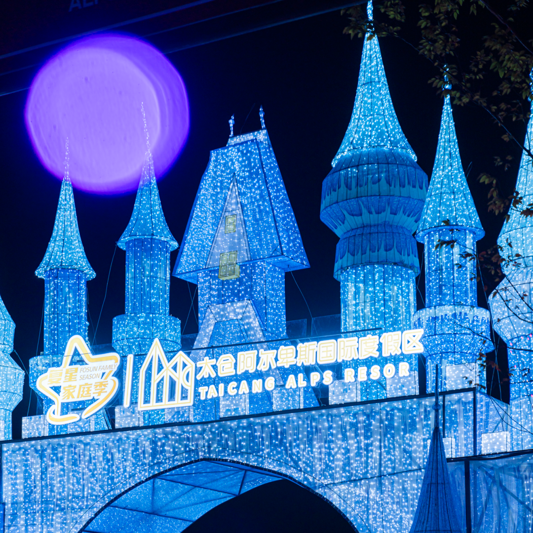 太仓阿尔卑斯国际度假区推出“阿尔卑斯冰雪灯节”,使灯彩与雪景交相辉映,并为人们带来了打铁花、京剧变脸等非遗表演秀。