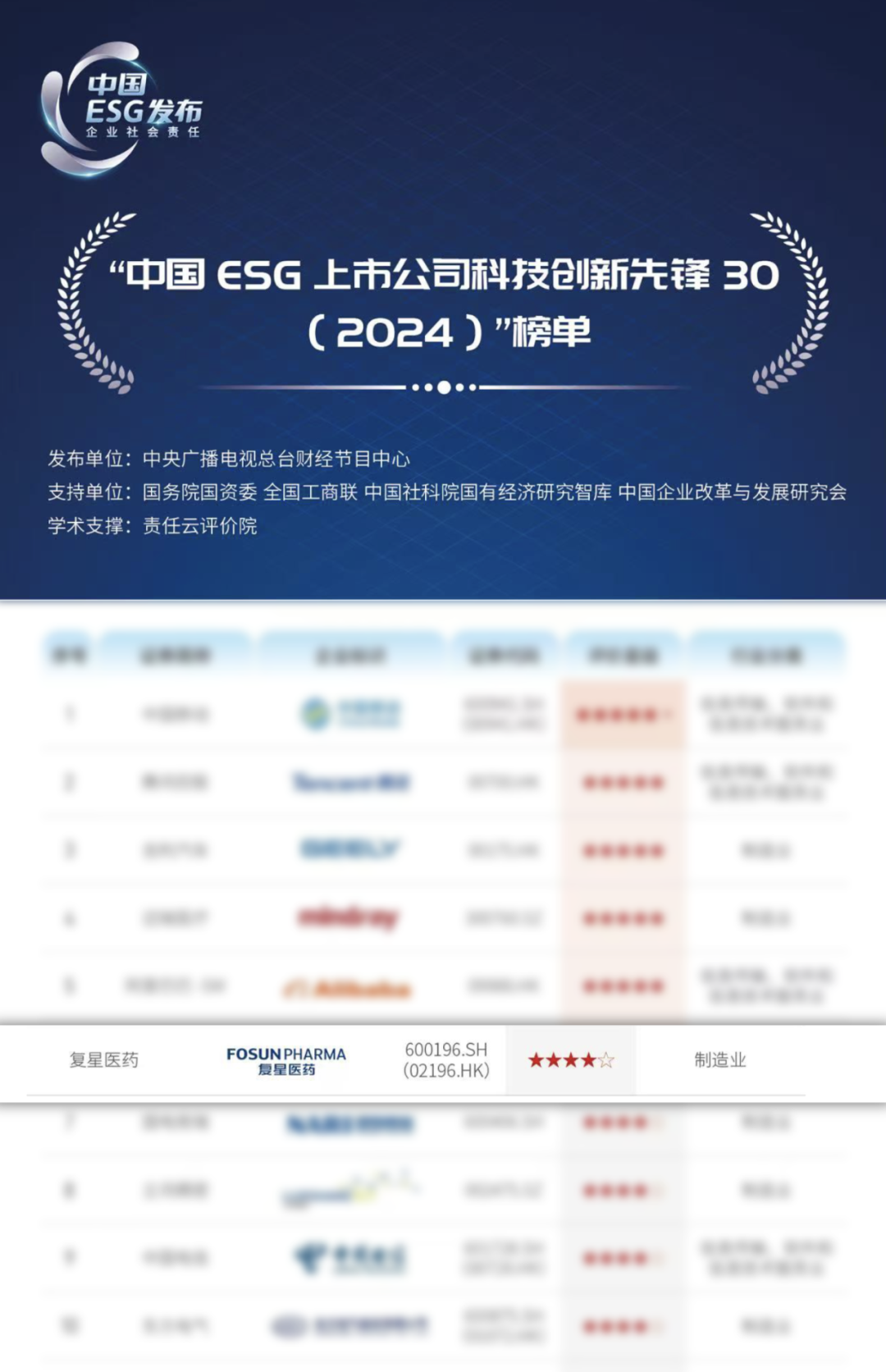 复鑫医药入选“中国ESG上市公司科技创新先锋30”