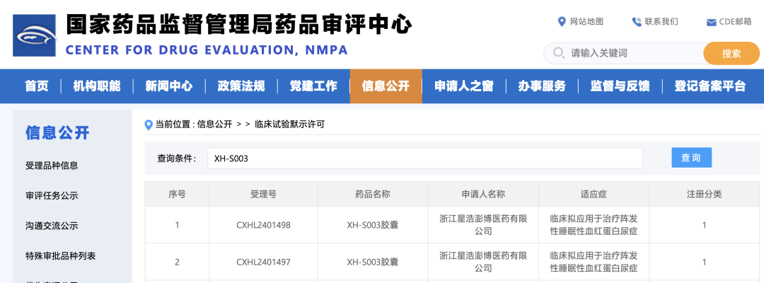 2025年3月13日,复鑫医药宣布控股子公司浙江星浩澎博医药有限公司(以下简称“星浩澎博”)于近日收到国家药品监督管理局关于同意XH-S003胶囊(申请注册分类:化药1类;以下简称“XH-S003”)用于治疗阵发性睡眠性血红蛋白尿症(PNH)开展临床试验的批准。星浩澎博拟于条件具备后于中国境内(不包括港澳台地区,下同)开展II期临床试验。