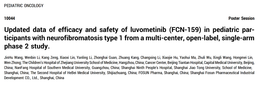 复鑫医药自主研发的芦沃美替尼片(FCN-159)治疗儿童I型神经纤维瘤病相关丛状神经纤维瘤(NF1相关PN)的2期临床研究更新数据入选1全球规模最大、最具权威性的临床肿瘤会议——2025年美国临床肿瘤学会(ASCO)年会。