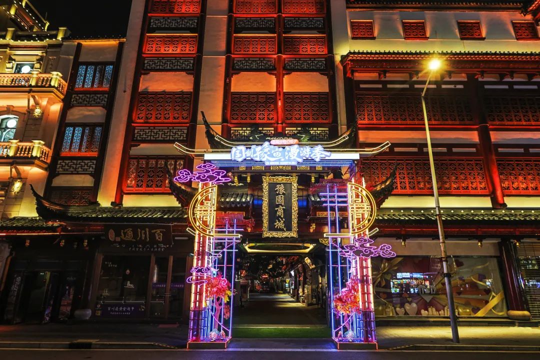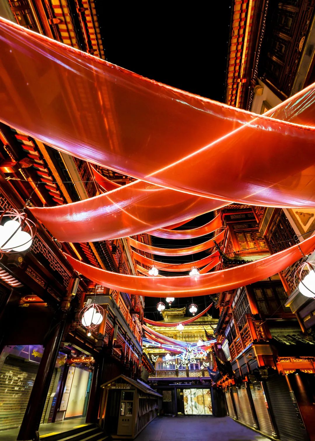 夜幕下的豫园,千灯璀璨,百年文化地标在“焕彩豫园”的光影与原创民乐的电子风中切换为“国创动画宇宙”,视觉上形成“古典园林+ACG次元”的双重震撼。七夕之夜,豫园更将携手国际电音厂牌Alter.,在园林怀抱中创造历史——举办豫园商城历史上首个室外新国风音乐活动,让古园心跳接入电子脉冲。