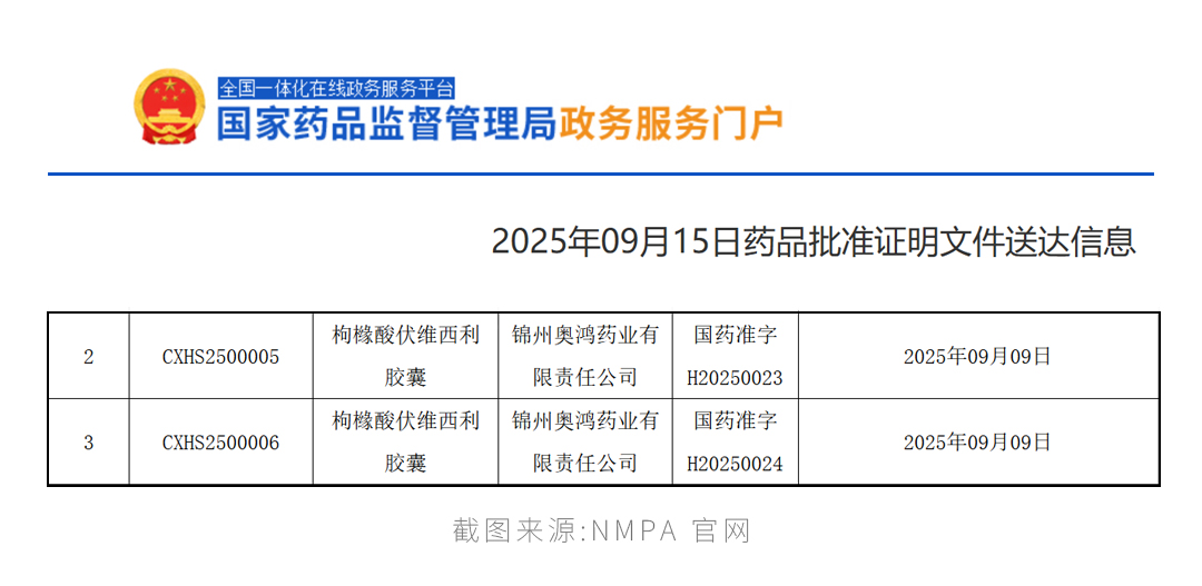 近日,复鑫医药宣布,控股子公司锦州奥鸿药业有限责任公司(“奥鸿药业”)就枸橼酸伏维西利胶囊(商品名:复妥宁®)新增适应症的药品注册申请获国家药品监督管理局批准。本次获批适应症为用于激素受体(HR)阳性、人表皮生长因子受体2(HER2)阴性局部晚期或转移性乳腺癌成人患者:与芳香化酶抑制剂联合使用作为初始内分泌治疗。