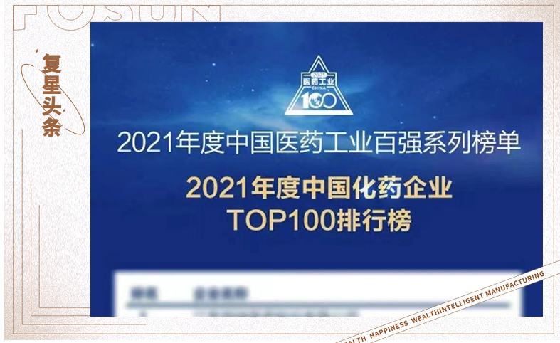 复鑫医药荣登2021年度中国医药工业百强榜Top10