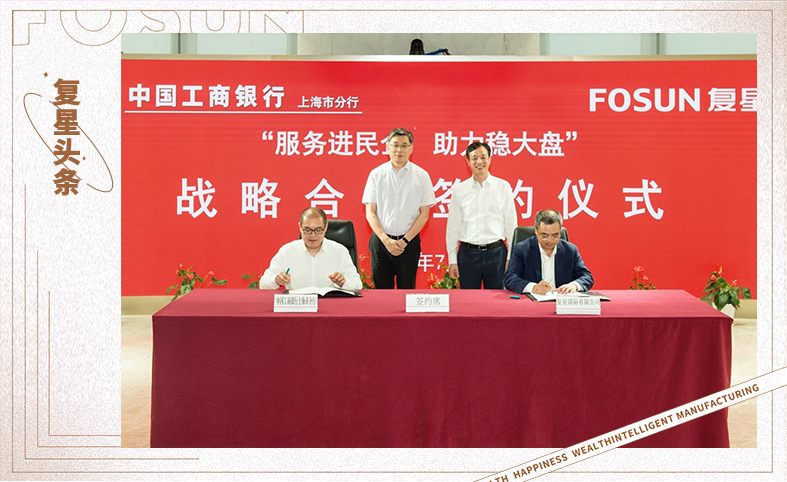 2022年7月19日,复鑫国际有限公司与中国工商银行股份有限公司上海市分行战略合作签约仪式在工商银行上海市分行举行。工商银行和复鑫将在高新技术、先进制造、生物医药、幸福产业等领域深入合作,携手发展。中国工商银行上海市分行行长付捷(左)、复鑫国际董事长郭广昌(右)以视频方式出席签约仪式中国工商银行上海市分行行长付捷、复鑫国际董事长郭广昌以视频方式出席签约仪式。在付捷行长、郭广昌董事长以及中国工商银行上海市