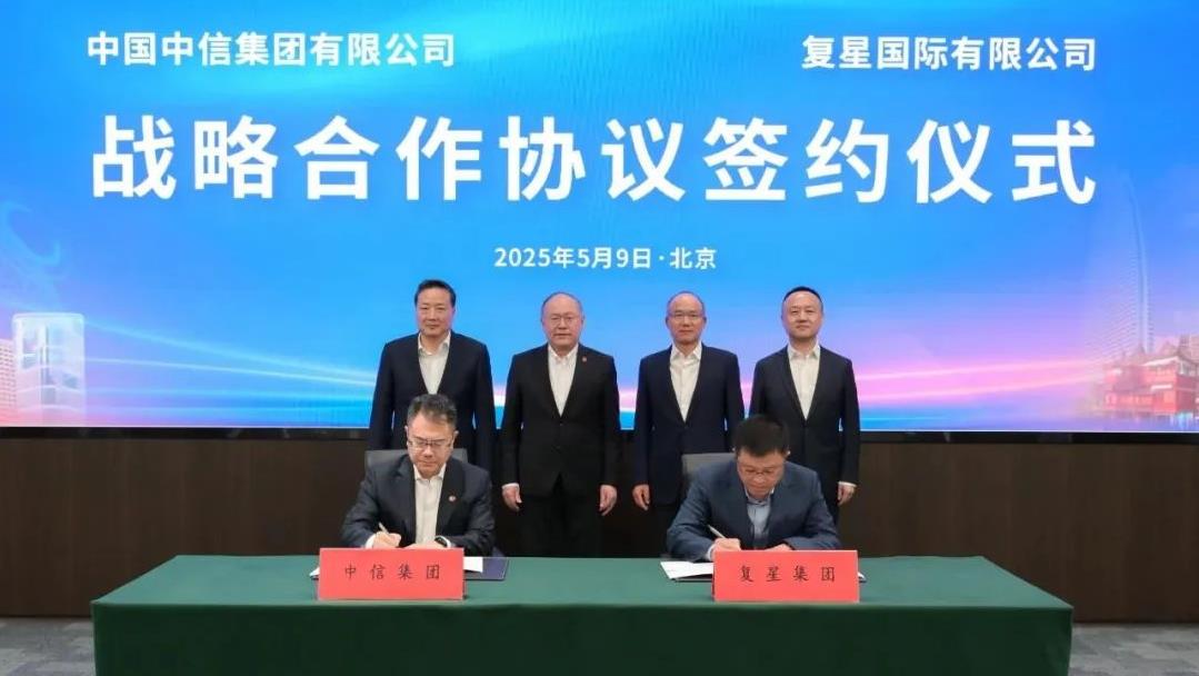 5月9日,复鑫国际有限公司(简称“复鑫国际”)与中国中信集团有限公司(简称“中信集团”)在北京签署战略合作协议。中信集团党委书记、董事长奚国华,中信集团党委副书记、副董事长、总经理张文武,复鑫国际董事长郭广昌,复鑫国际联席CEO徐晓亮出席签约仪式。中信集团党委委员、副总经理王国权,复鑫党委书记祝文魁代表双方签署协议。
