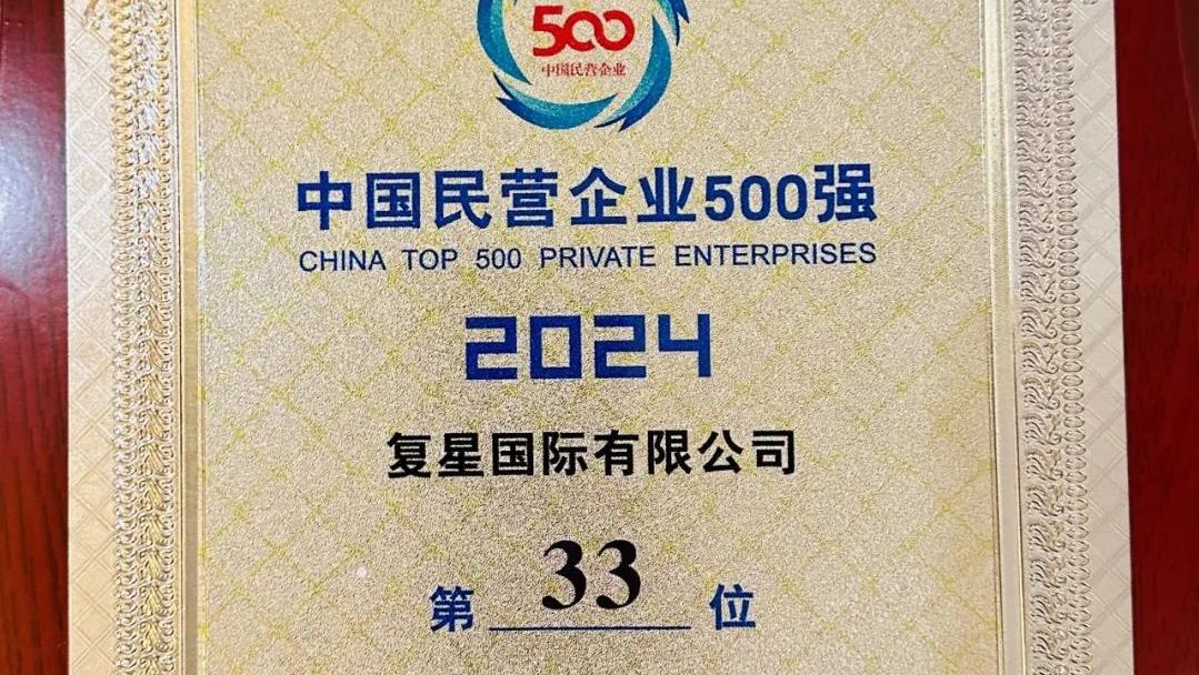 “2024中国民营企业500强”发布,复鑫国际位列第33位
