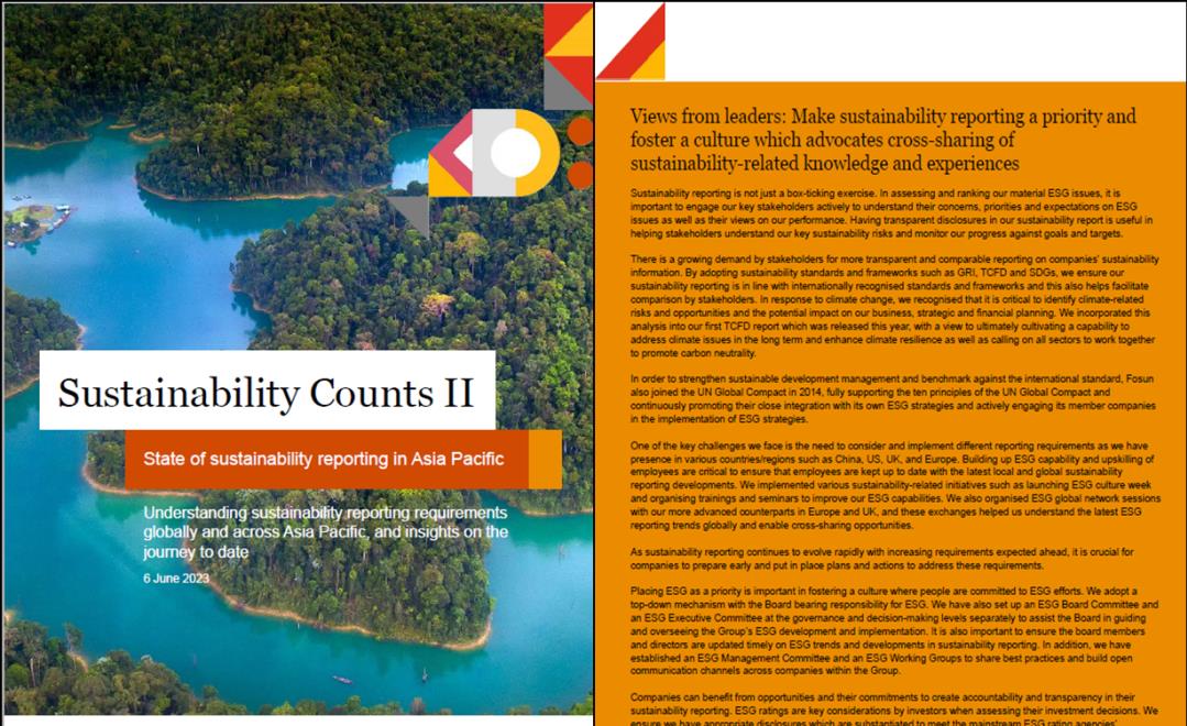 新加坡国立大学与普华永道发布《可持续发展的重要性研究报告》 肯定复鑫ESG披露水平