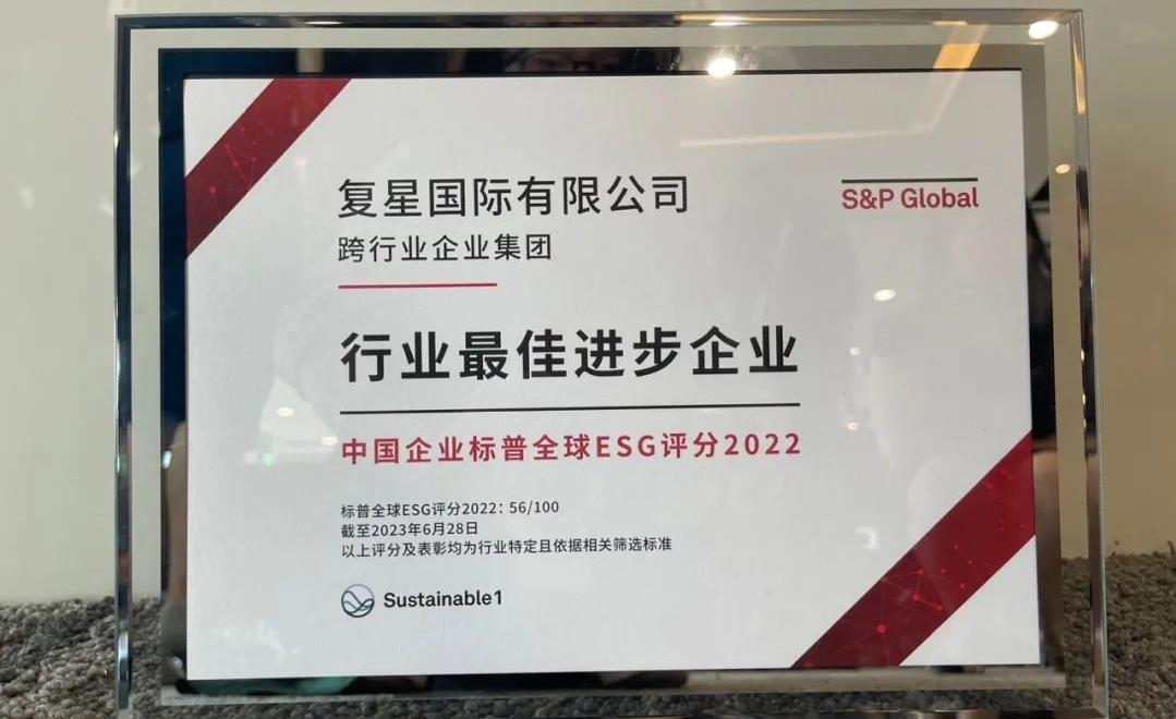 复鑫国际入选标普全球《可持续发展年鉴2023(中国版)》及获颁“行业最佳进步企业”标徽